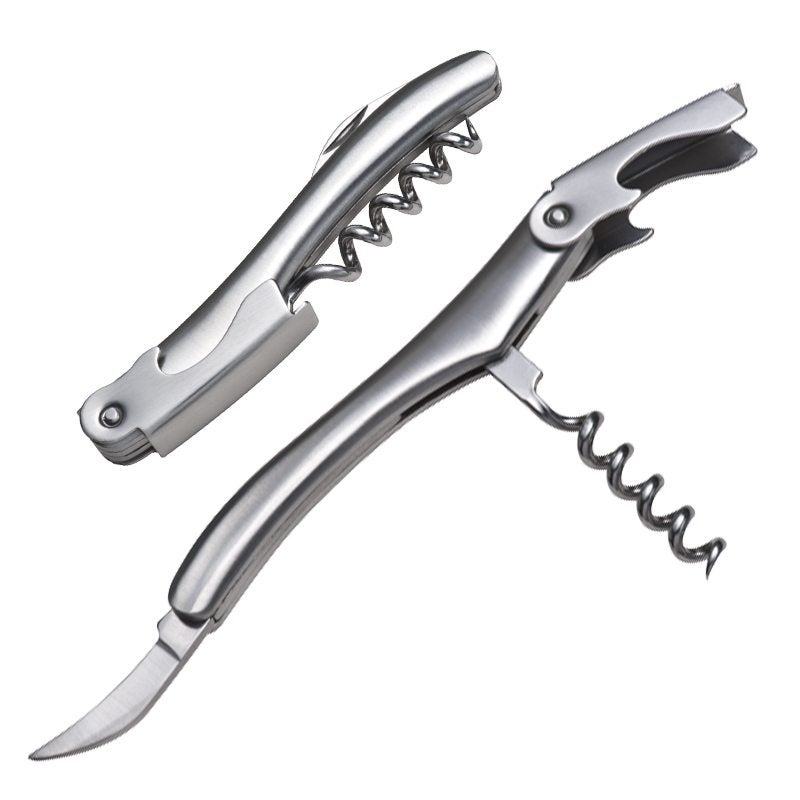 De gewone kurkentrekker met hevel, het zogenoemde kelnersmes, is het meest handige hulpmiddel om een fles mee te openen. Een kelnersmes is ook bekend onder de naam sommeliersmes.